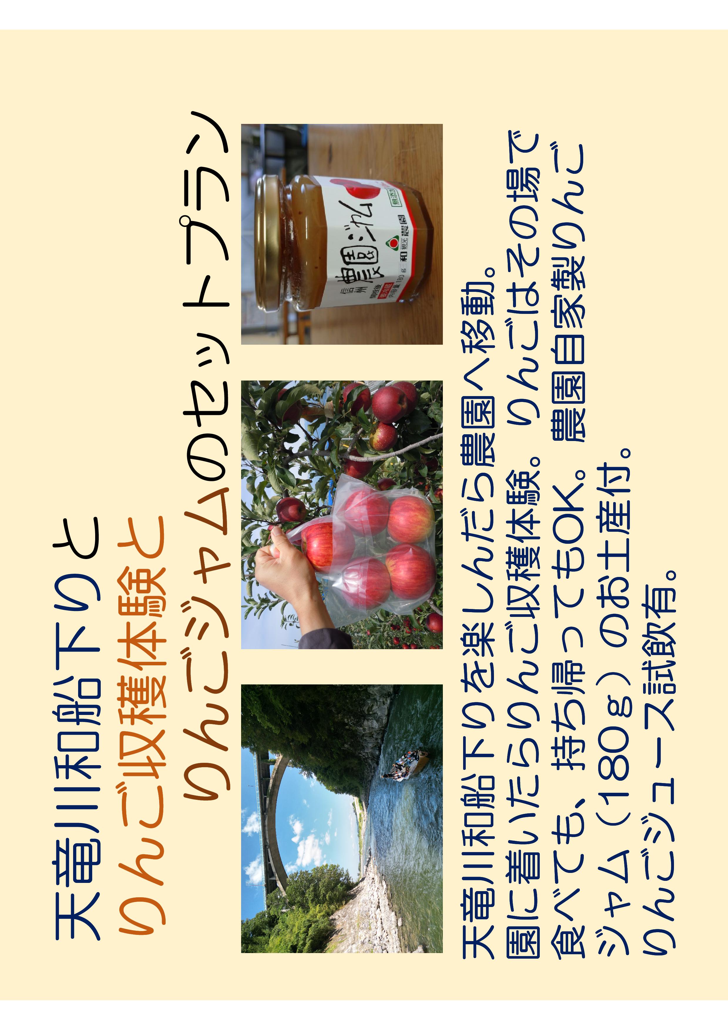 ホームページ特別価格です!! 天竜川和船下りと「りんご収穫体験とりんごジャムのお土産」のお得なセット 和船下り体験後、農園に移動してりんご収穫体験(5個)・りんごジャム180gのお土産付