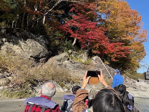 青麻神社を水上より参拝し、紅葉の渓谷を眺めた後は早瀬にアタック!