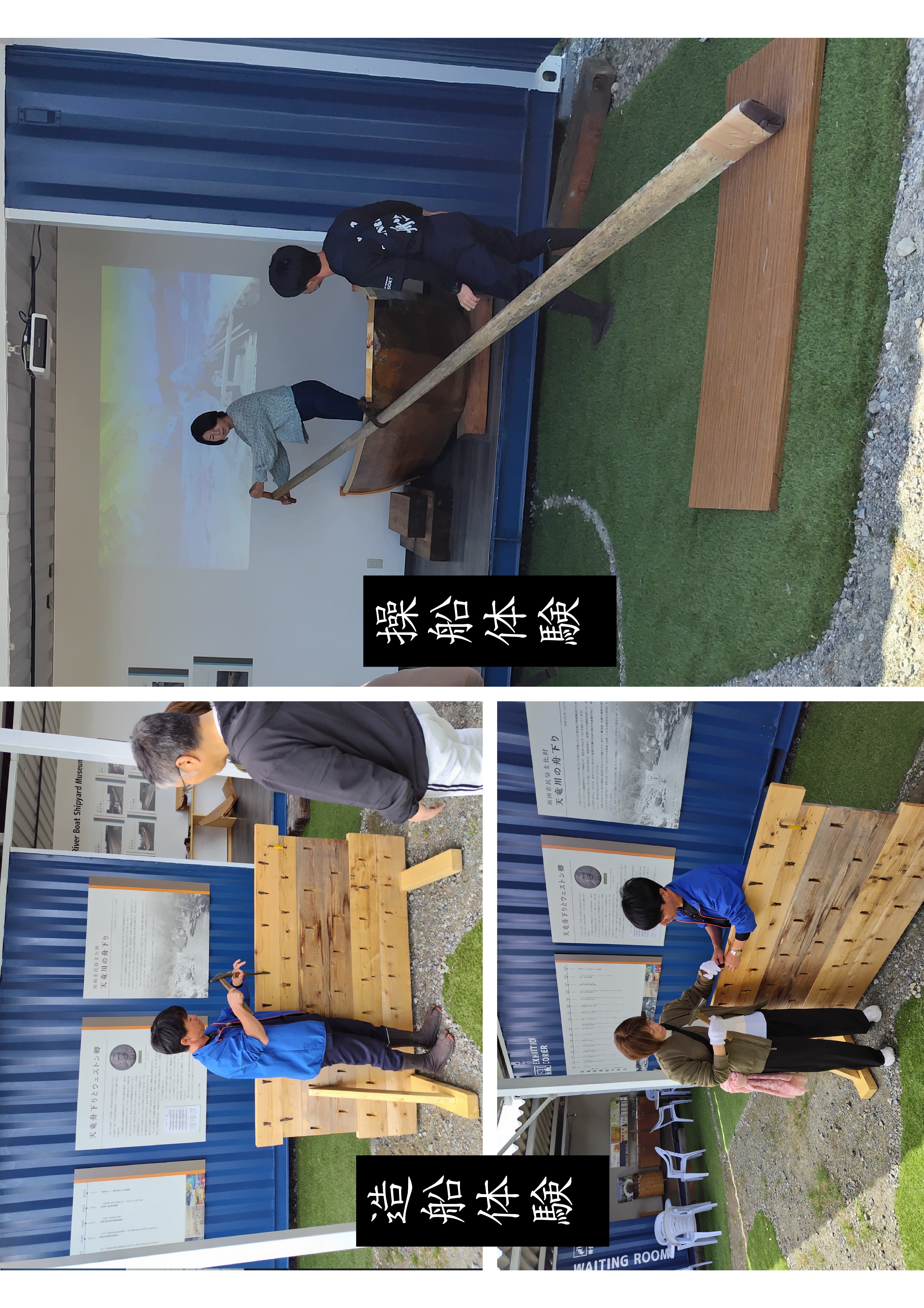 珍しい船釘打ちや、手漕ぎの操船を体験